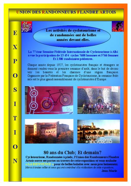 Vous êtes ici: accueil » vie_du_club » expo80ans En 2015, à l'occasion de son 80e anniversaire, le club a retracé son histoire et l'a résumée en quelques panneaux que nous reproduisons ici.